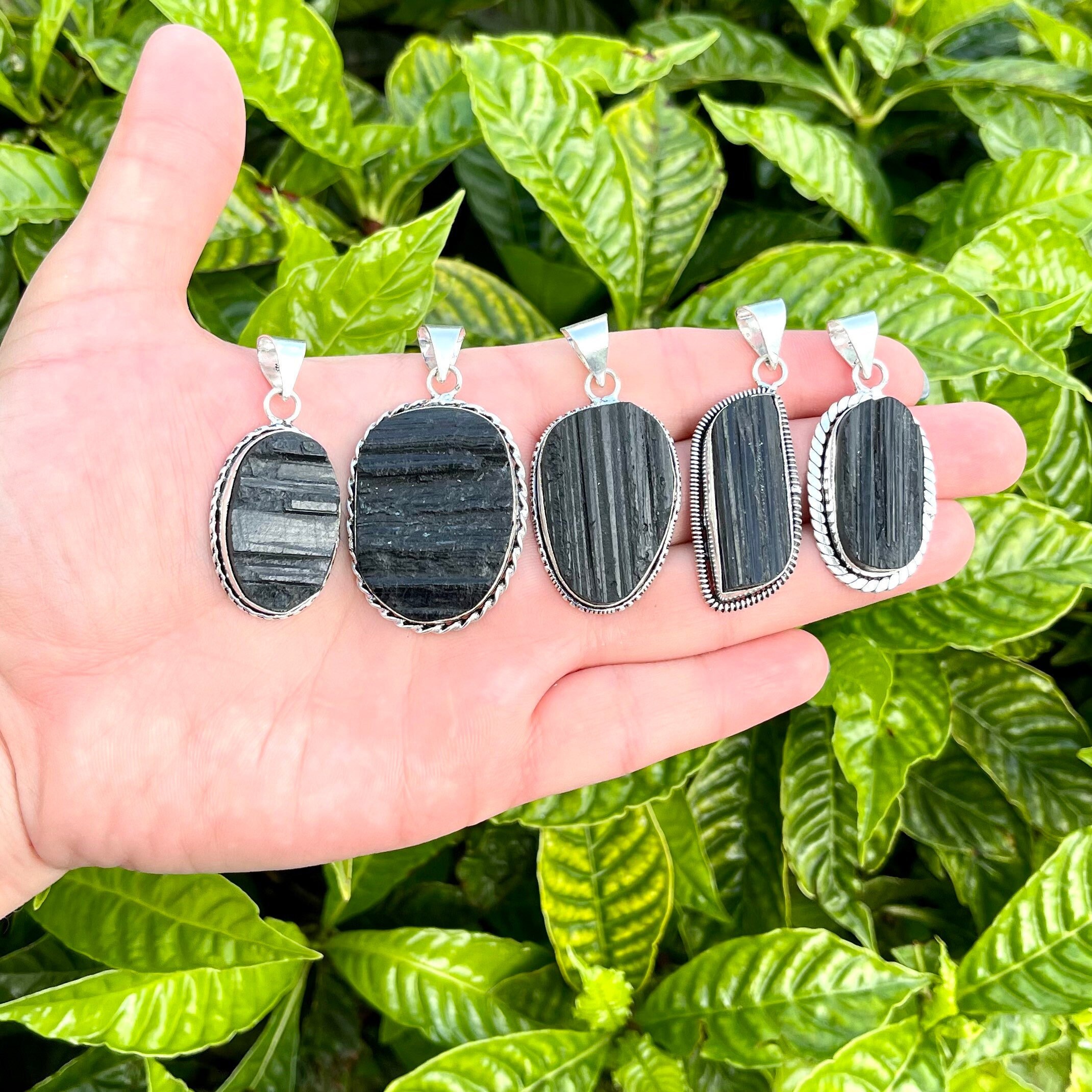 Natural Black Tourmaline Schorl Pendants | 925 Sterling Silver Plated | Boho Style | Size 1 - 1.5 Inch