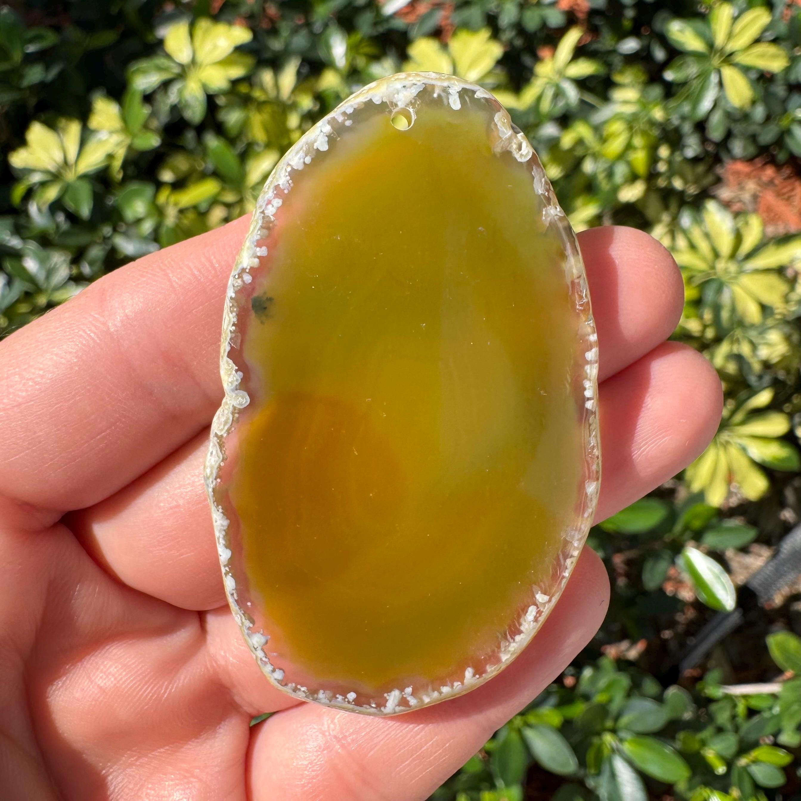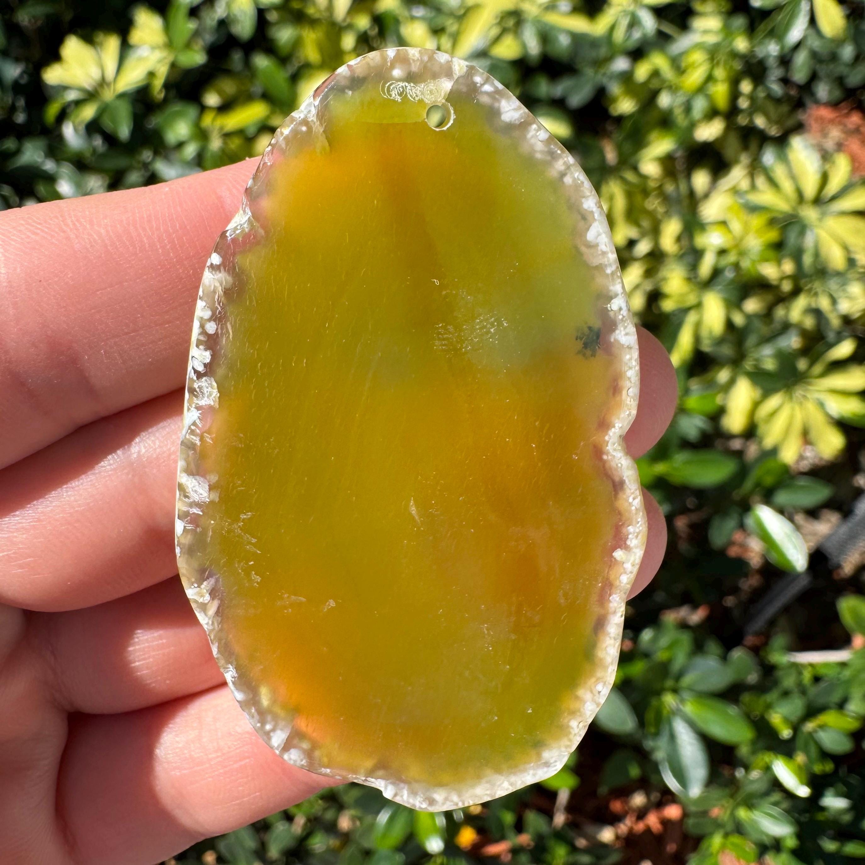 Natural Yellow White Striped Agate Freeform Slab Gemstone Pendant Focal Bead Size 70x40x5mm