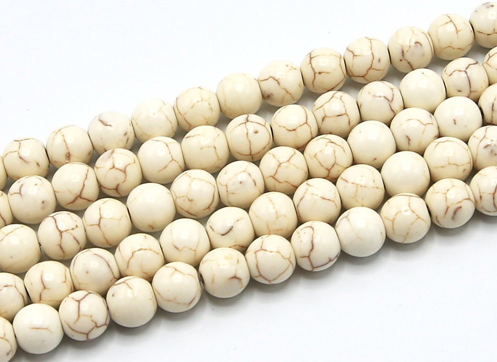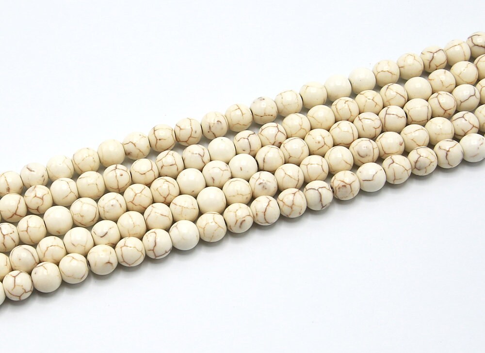 White Turquoise Beads | Magnesite Beads | Round Synthetic Gemstone Loose Beads | Sold by Strand | Size 8mm