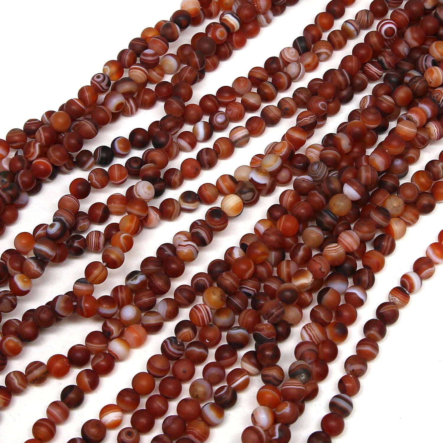 Stripe Agate Beads | Matte Brown Red | Round Natural Gemstone Loose Beads | Sold by Strand | Size 6mm