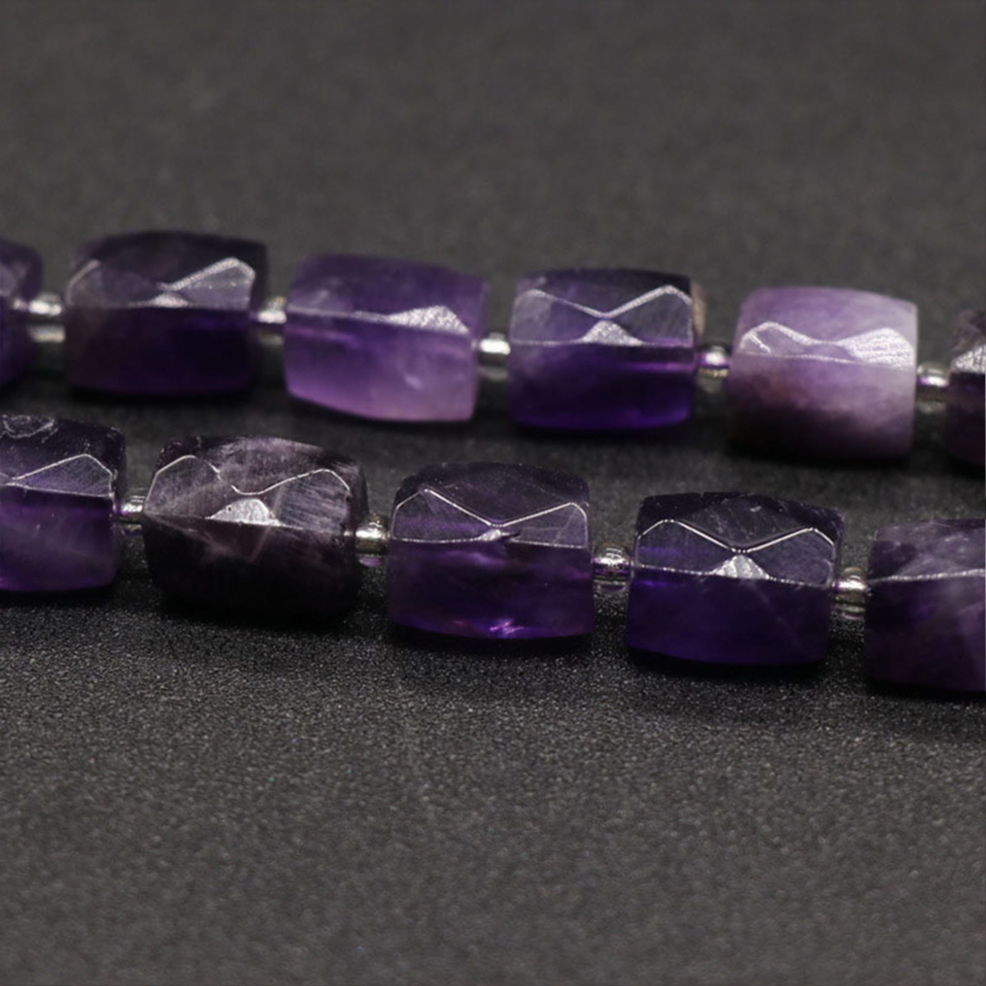 Natural Amethyst Beads | Grade A | Faceted Barrel Accent Gemstone Loose Beads | Sold by 4 Inch Strand | Size 15~17mm | Hole 0.8-1mm