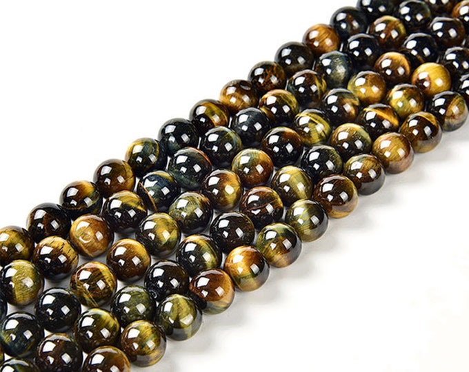 Natural Deep Blue Tiger Eye Gemstone Round Beads | Grade AAA | Sold by 15 Inch Full Strand | Size 6mm 8mm 10mm